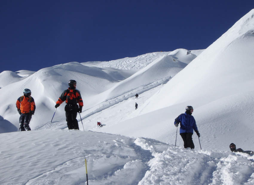 Eine Traumhafte Tiefschneepiste haben auf dem Bild rechts erwischt