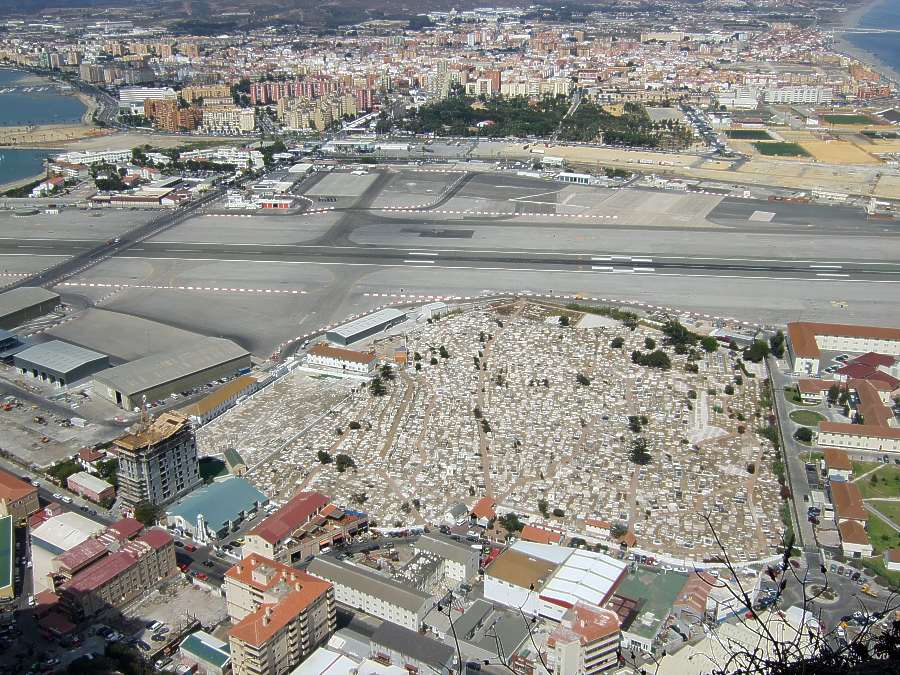 Im Vordergrund der Friedhof dann gleich der Flughafen |