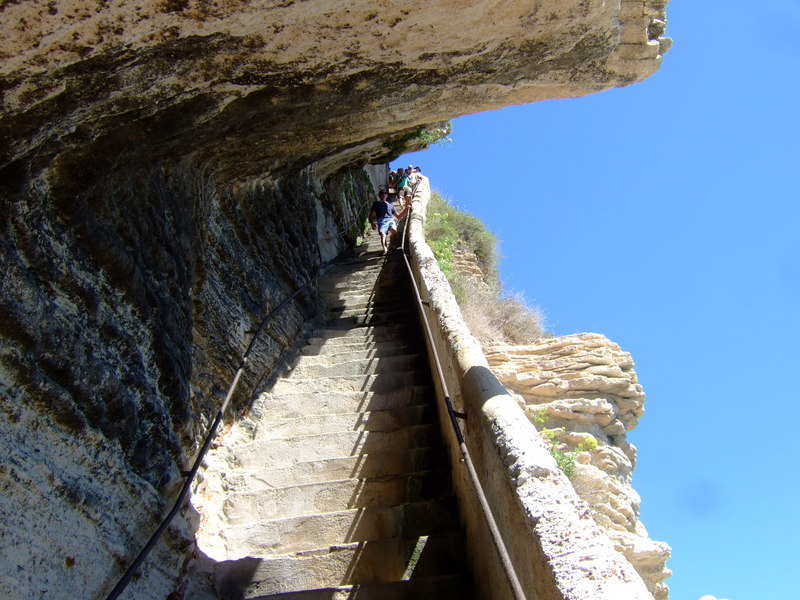 Links sieht man die berühmte Treppe, die Eroberer in die Kalksteinfelsen geschlagen hatten,