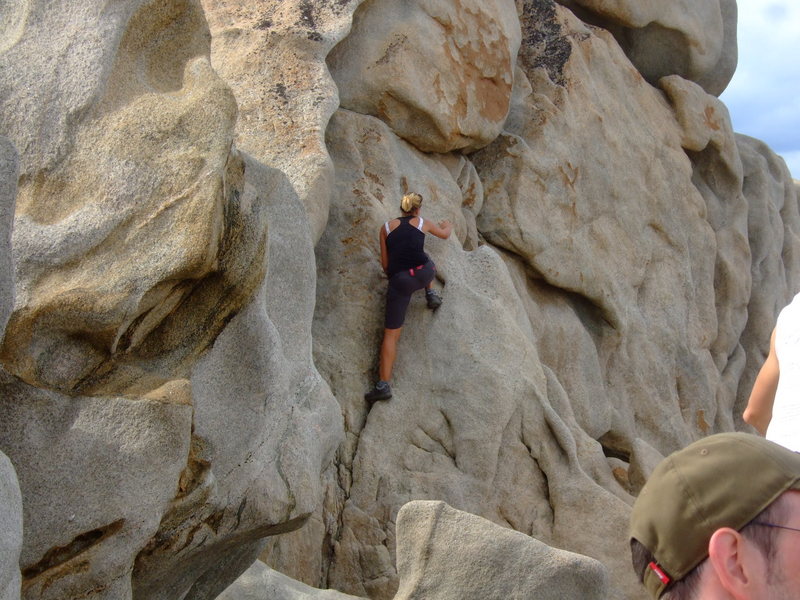 In einer Pause versuchte sich eine der Teamerinen an einer Felswand