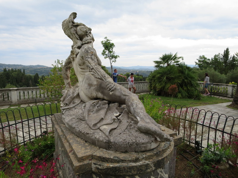 Das Achillion ist eine von Kaiserin Sisi genutzte Villa auf einem Hügel nahe am Meer. Früher konnte man bis zum Meer