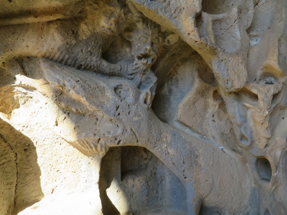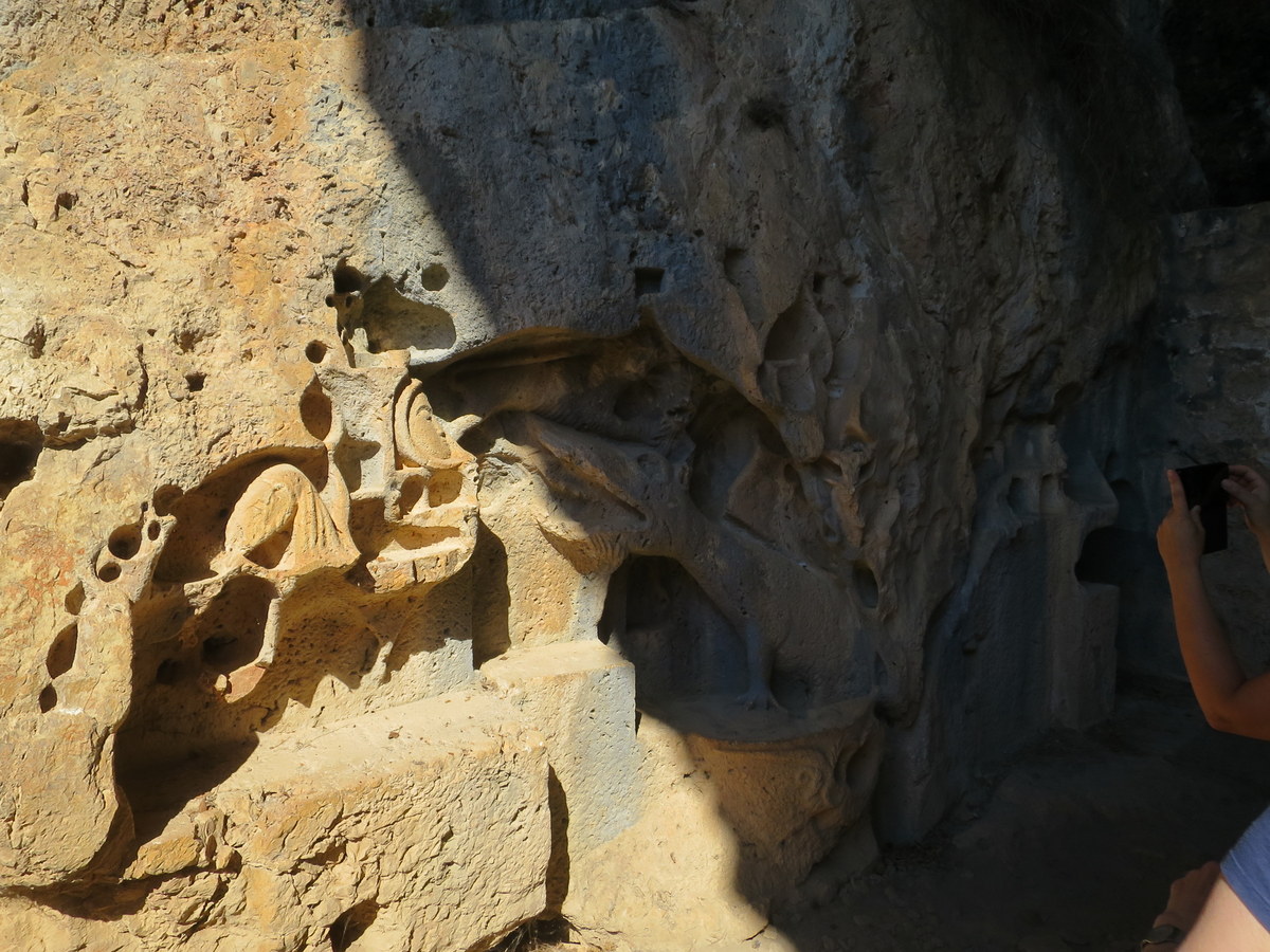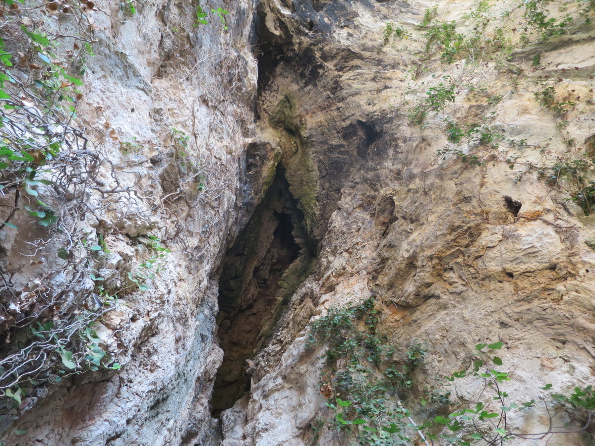Die Höhle wurde früher von Erimiten bewohnt. Diese hatten eine Mauer vor die Höhle gebaut. Der Eingang war so angelegt worden,