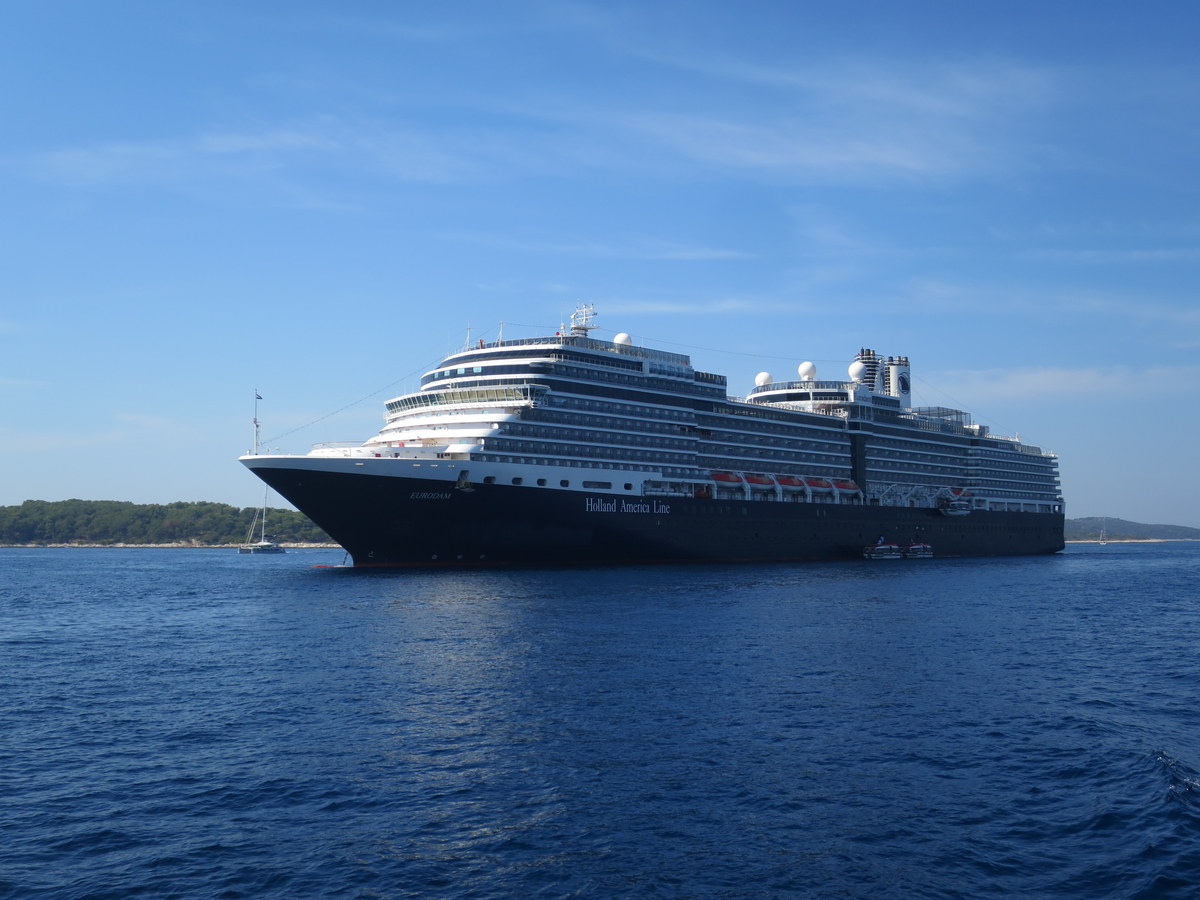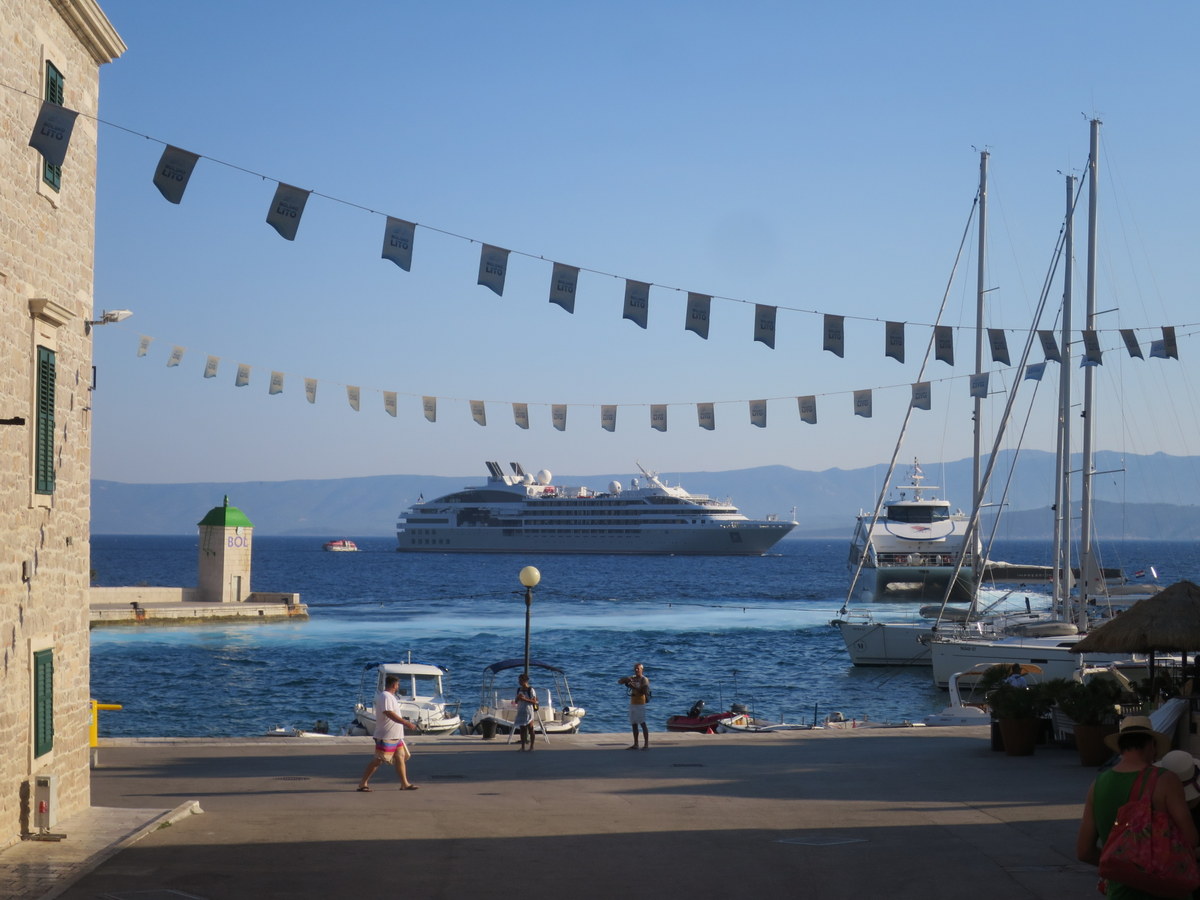 Am Eingang des Hafens von Havar lag ein großes Kreutzfahrtschiff, dessen Gäste gerade ausgebootet wurden.