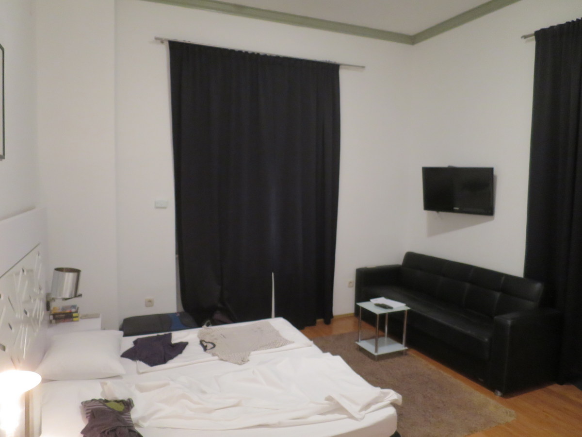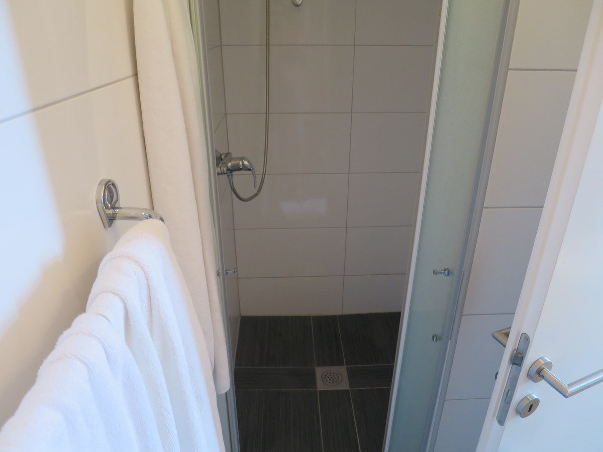 Die Zimmer waren unglaublich hoch. Das Bad war als Kasten im Zimmer ausgeführt,