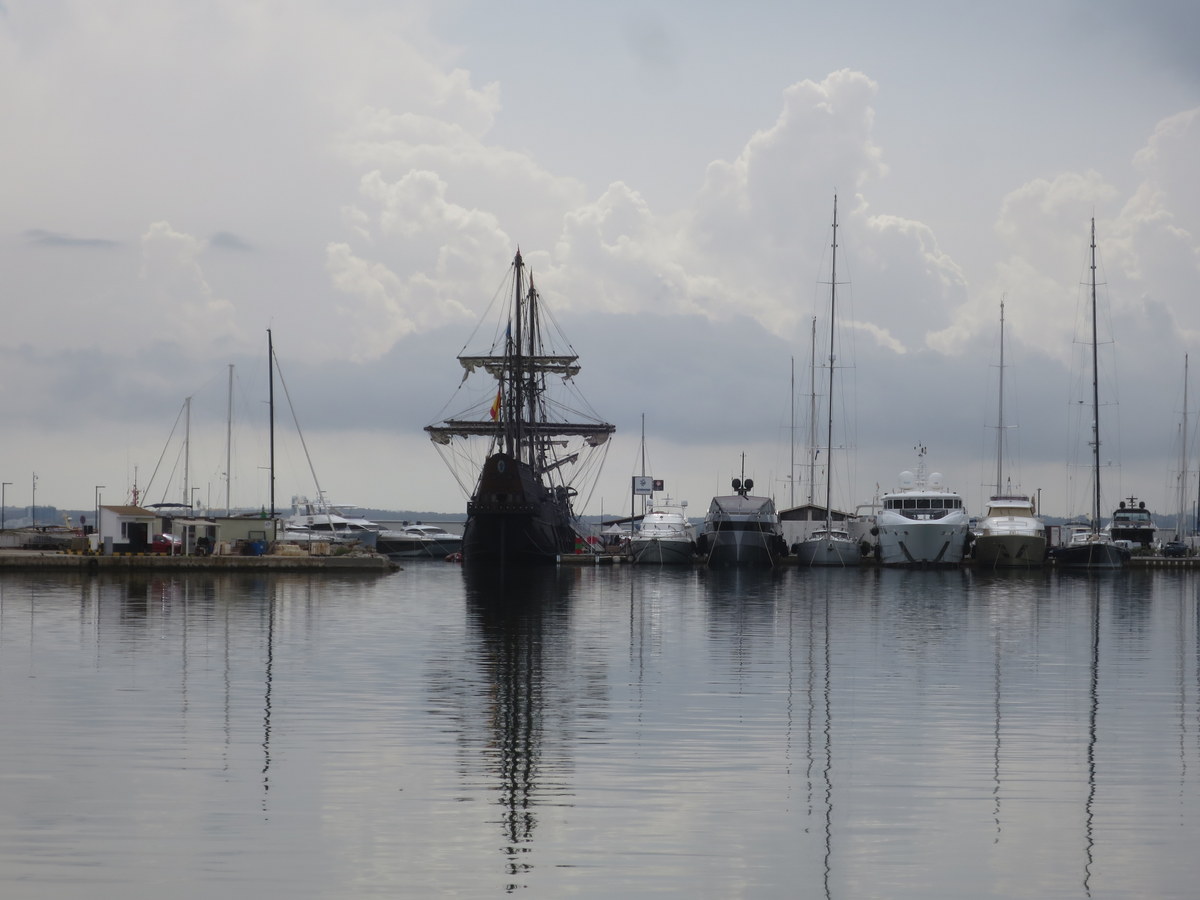 Im Hafen lag, neben anderen Booten, auch dieses historische Schiff (oder Nachbau) |