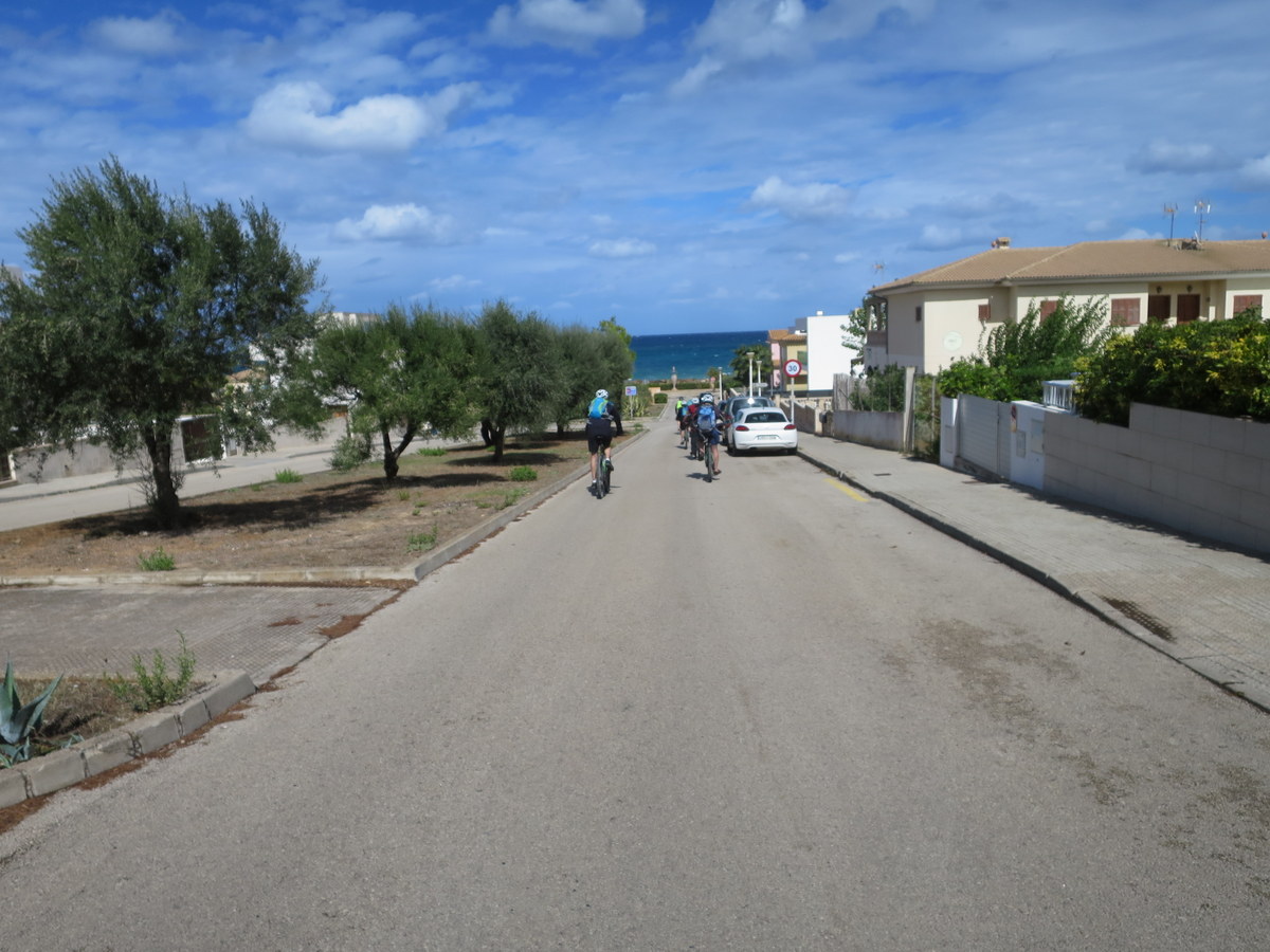 Im Ort Son Serra de Marina angekommen ging es eine lange Straße recht steil bergab zum Meer.