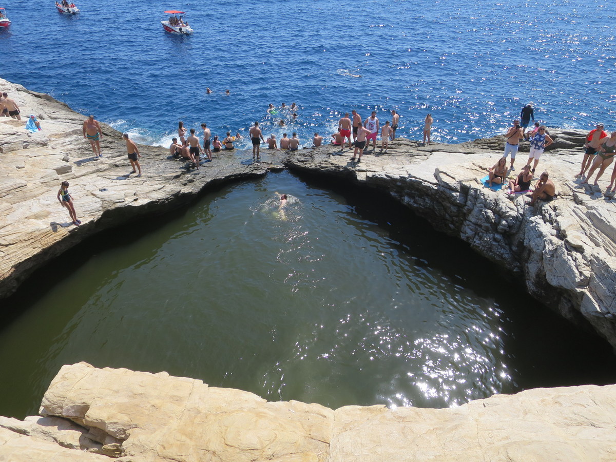 Als erstes sind wir auf ein "Blaue Tour" Boot getroffen - d.h. ein Boot, das um die Insel fährt und verschiedene Stellen und Buchten