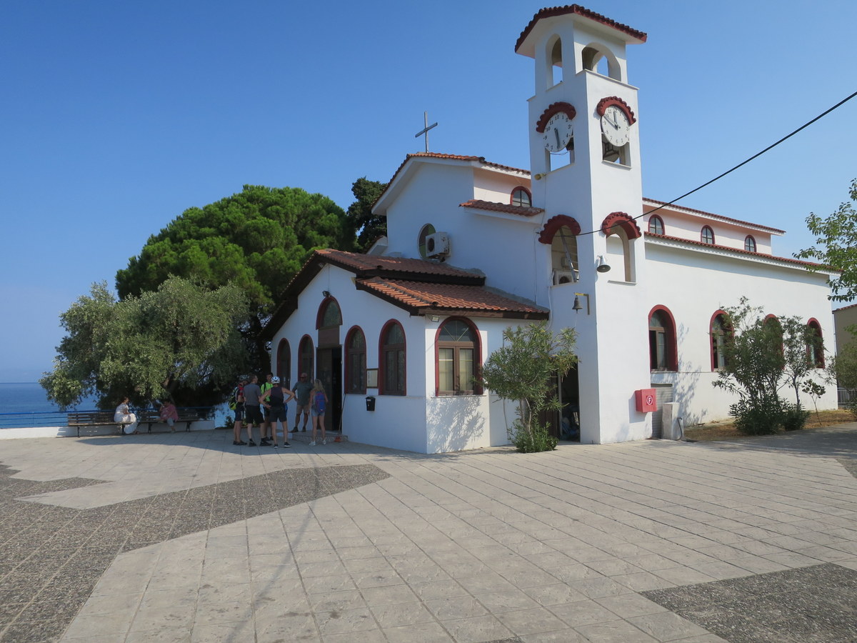 Die Kirche von Skala Sotiros liegt direkt am Meer |
