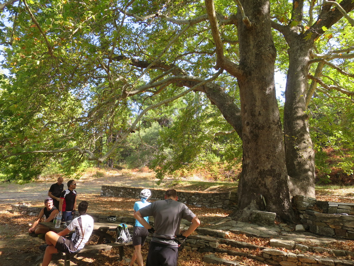 Hier gab es eine Pause unter mächtigen Platanen.
