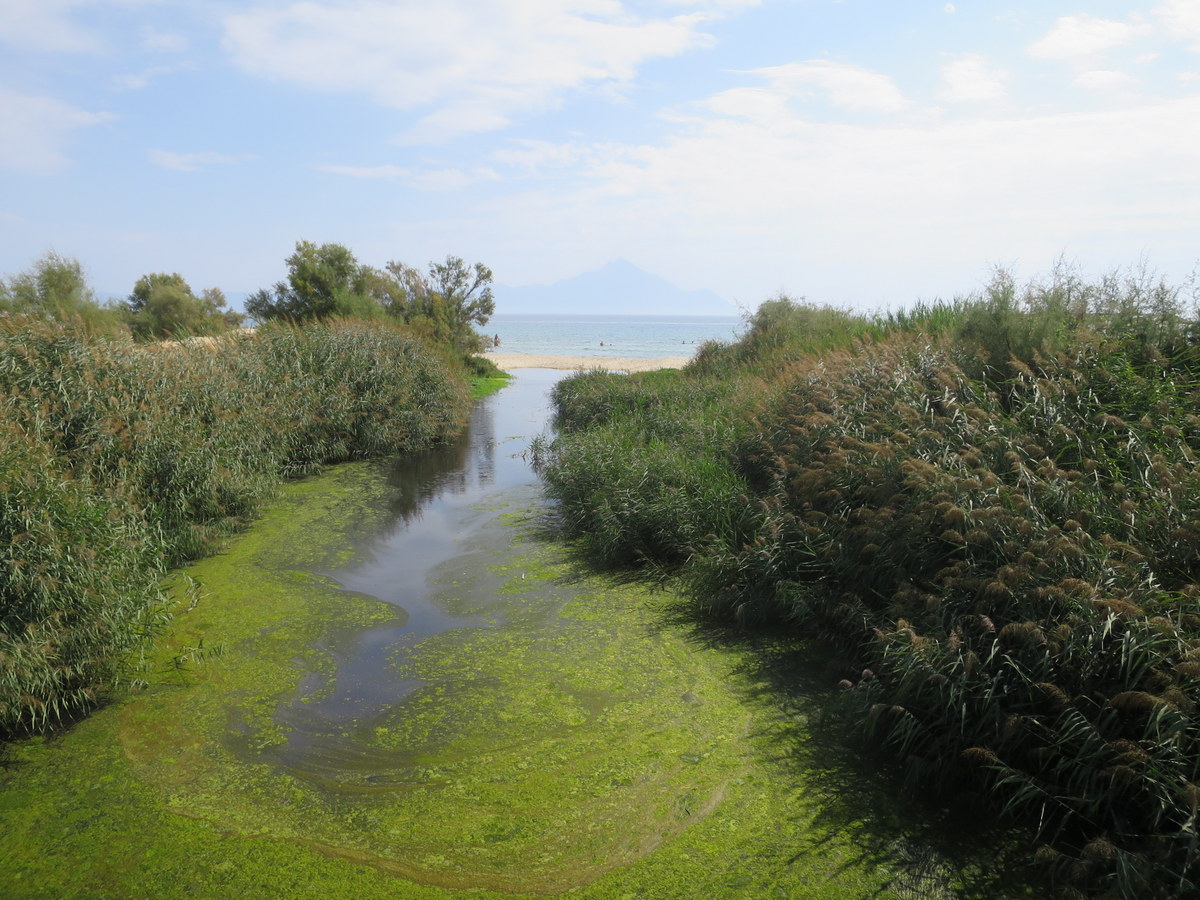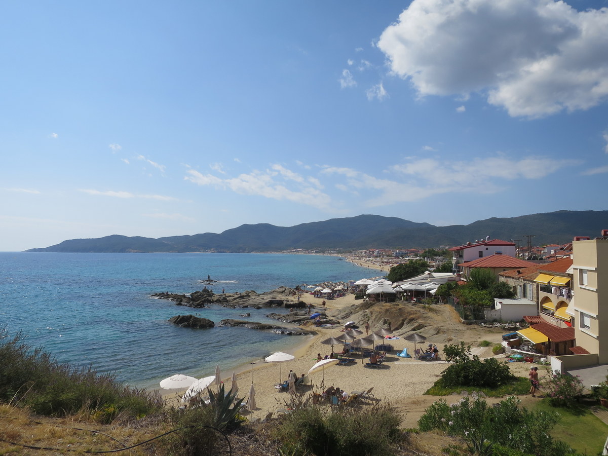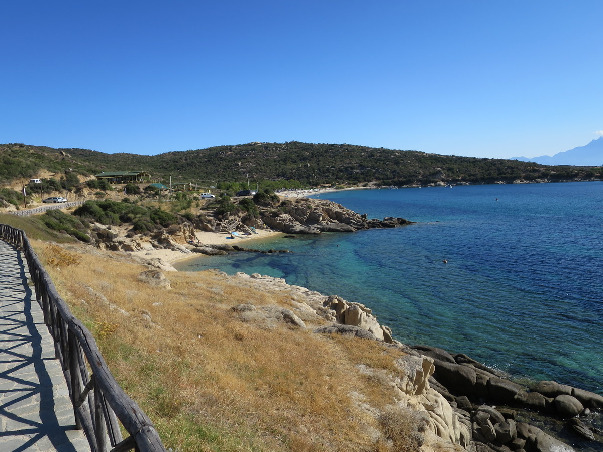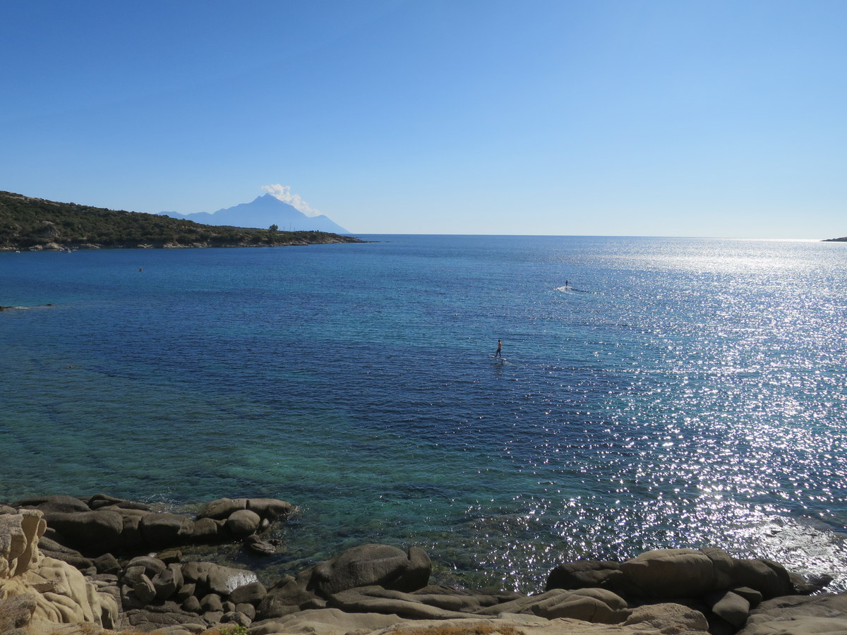 Blick vom Weg zwischen unserem Hotel und Sarti auf den Berg Athos