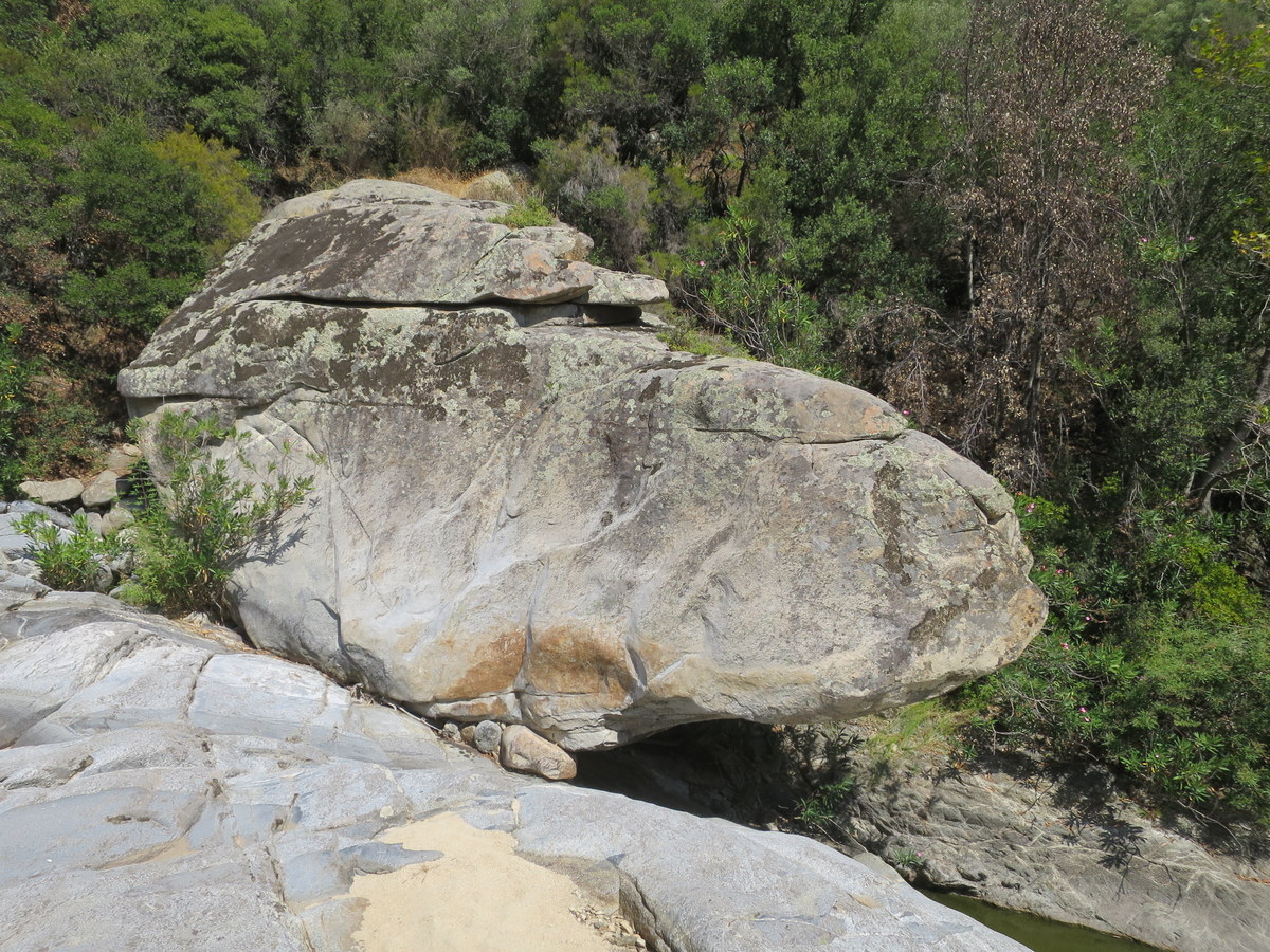 einen Bachlauf entlang bis zu einem Felsen gewandert, der entfernt an einen Affenkopf erinnert.