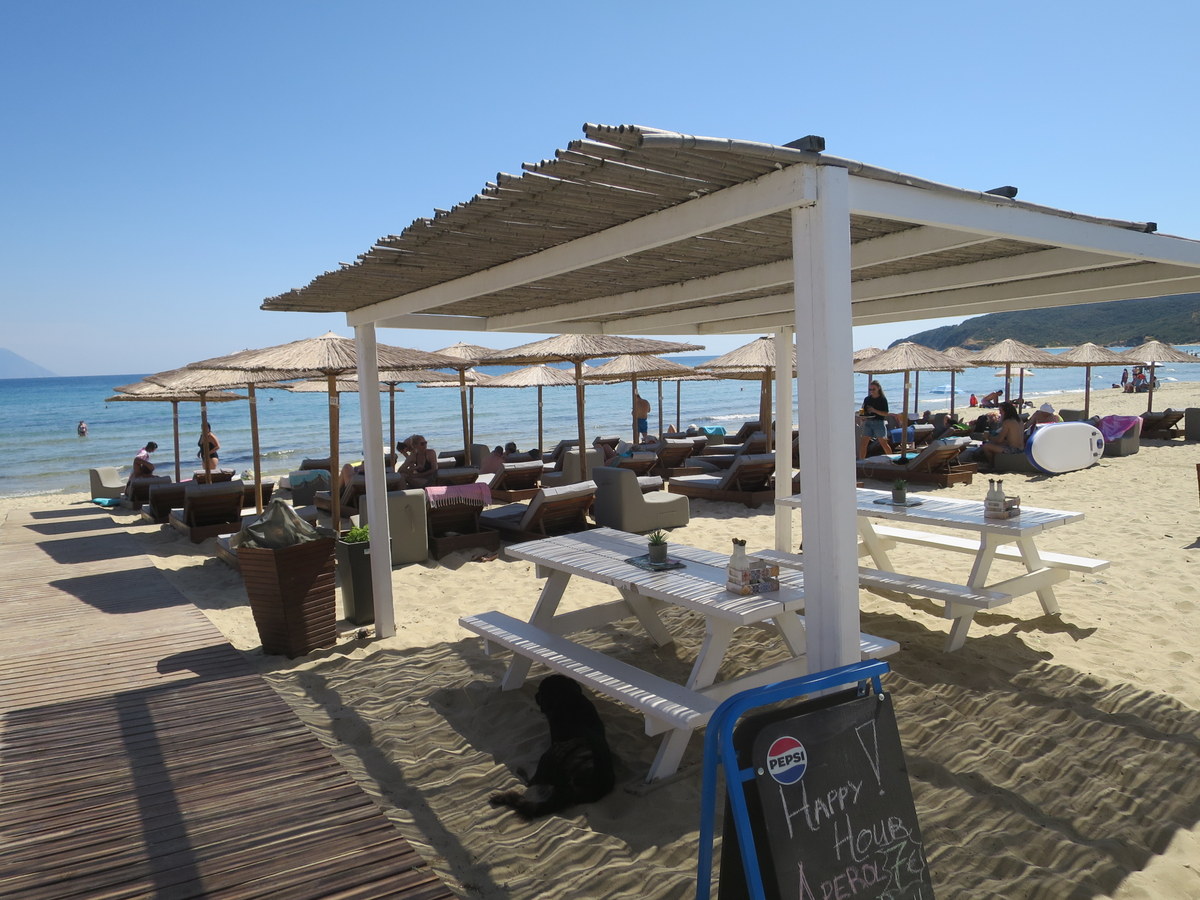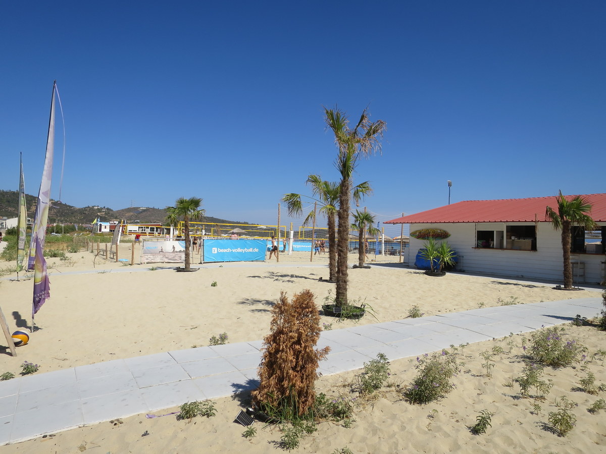 festinstallierten Volleyballfeldern zu spielen. Viele Gäste waren scheinbar auch vor allem desshalb nach Sarti gefahren.