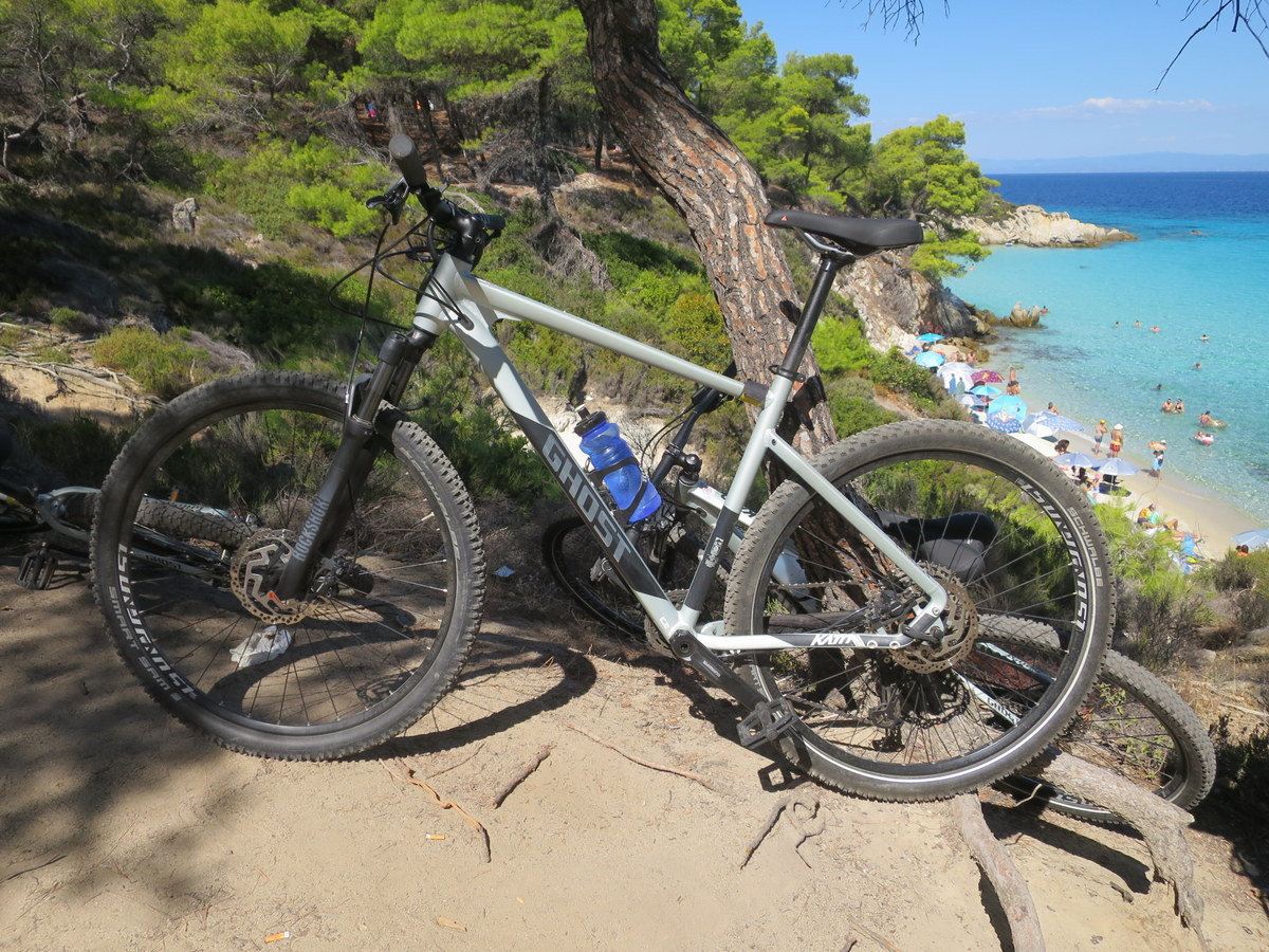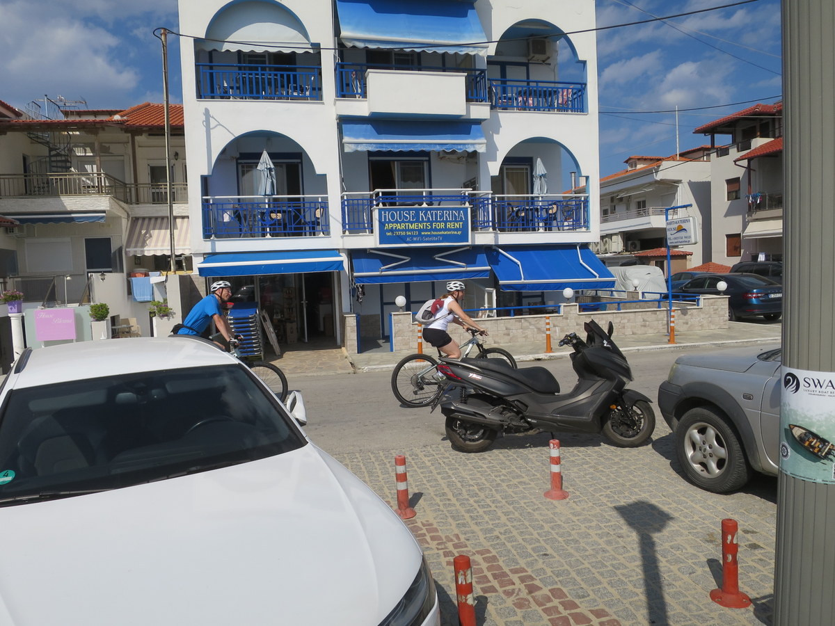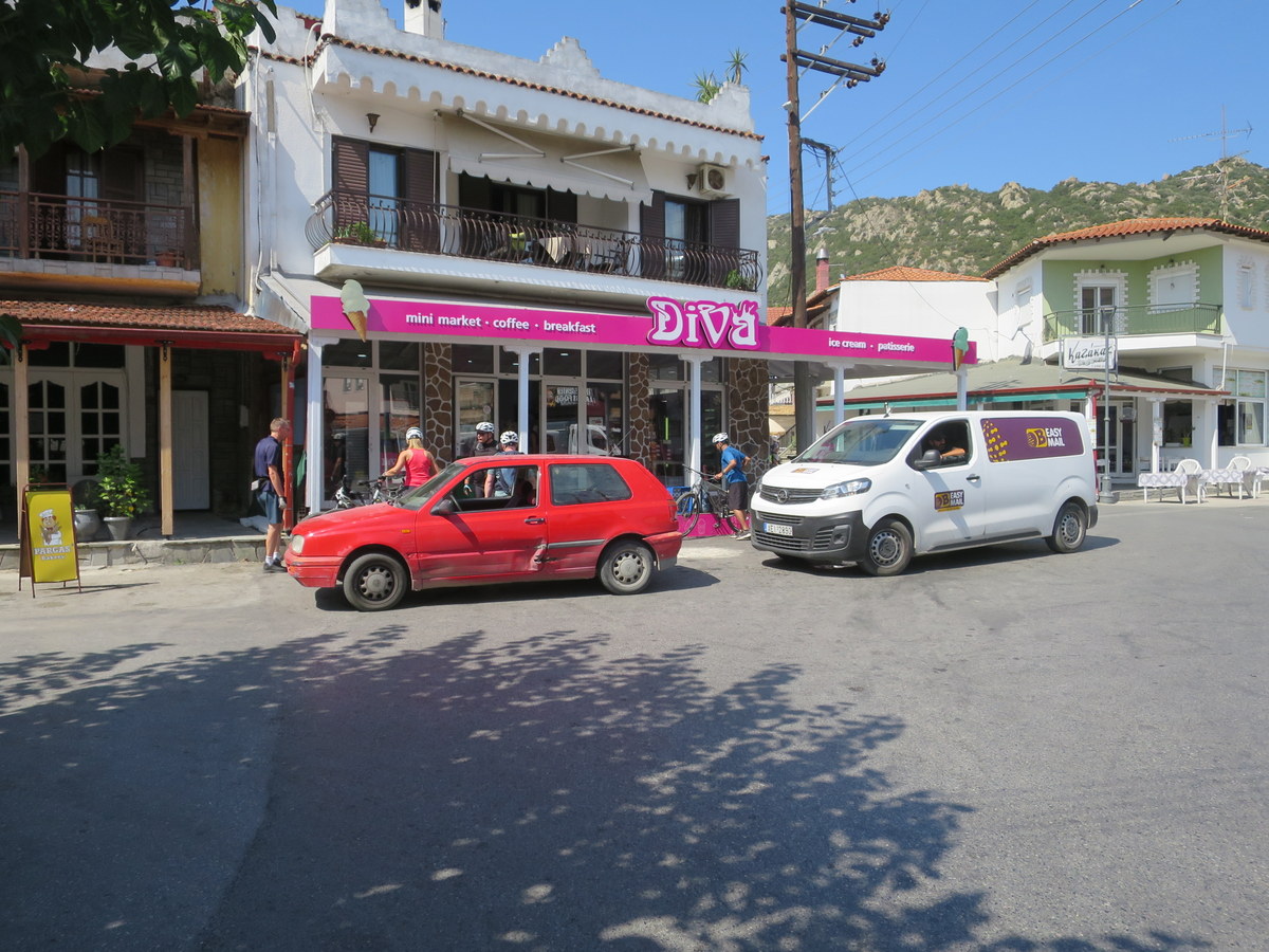 Marke zu bekommen, hatten wir uns entschlossen mit dem Rad in den Nachbarort Sykia zu fahren und dort Marken zu kaufen.