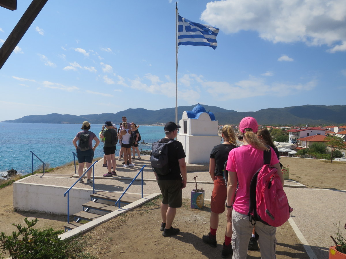 Aussichtspunkt mit griechischer Flagge und unserer Teamerin Ilka |